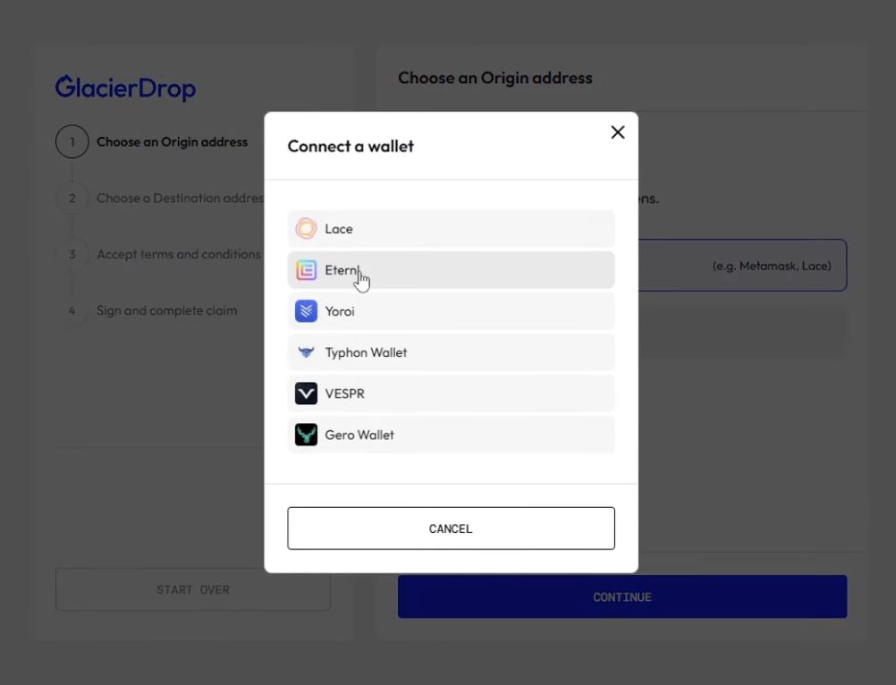连接自托管钱包签署验证消息,并提交新的Cardano接收地址。