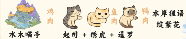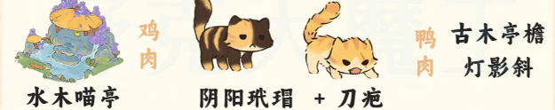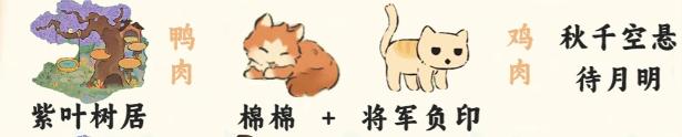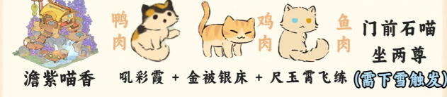 澹紫喵香+吼彩霞(鸭肉)+金被银床(鸡肉)+尺玉霄飞练(鱼肉)