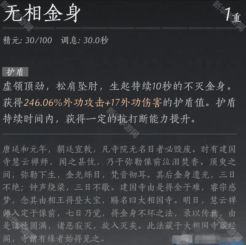 2、获得246.06%外功攻击+17外功伤害的护盾值。