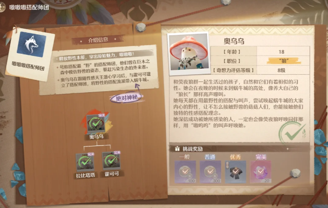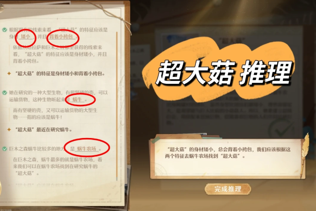 无限暖暖伊赞之土的搭配势力赛中,需要完成的推理有超大菇、薇薇安、奥乌乌、性感天王,其中超大菇推理答案为矮小、背着小挎包、蜗牛、蜗牛农场;薇薇安推理答案为靠近水源、火堆、巨人墓园;奥乌乌推理答案为蜗牛城高处、学荧夜狼叫、夜晚;性感天王推理推理答案为森林狂欢节、手工作坊东边的树林、狂舞者“雅雅”。
