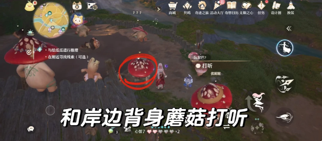 无限暖暖靓汤疑云首先需要集齐缺失的线索,恰瓜瓜在左侧地上和左侧泥潭,以及同一泥潭的岸边,还有恰瓜瓜的左侧。推理答案分别选择大雾、查瓜瓜、奇怪声响即可。具体的恰瓜瓜线索位置内容见以下正文!