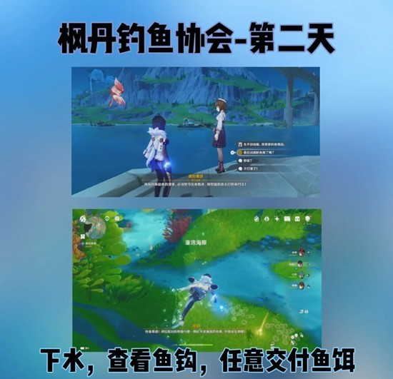 •与NPC对话后,下潜到水下,在鱼钩上放置一条鱼