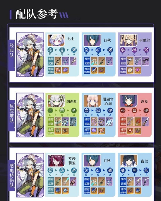 ③感电持伤队:雷泽+罗莎莉亚+行秋+夜兰