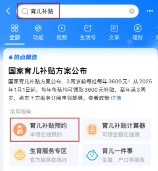 第一步:登录支付宝后直接搜索"育儿补贴"关键词