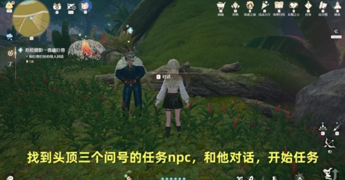 找到头顶三个问号的巨兽打扮的怪人npc对话,开始任务;