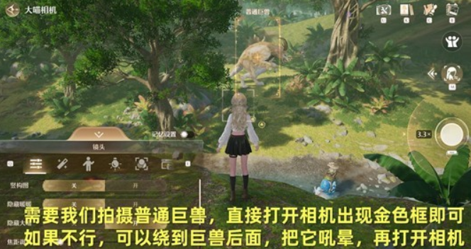 如果不行,可以绕到巨兽后面,把它吼晕后,打开相机拍照也可以;