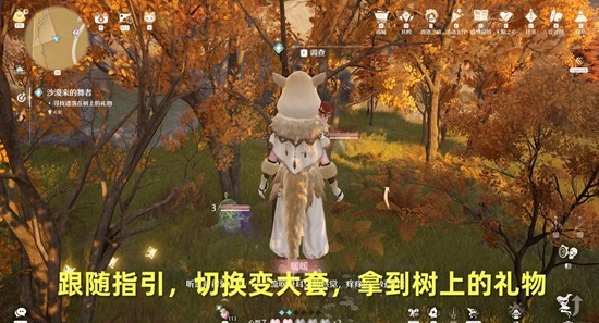 跟随指引,找到遗落在树上的礼物,我们直接切换变大套,拿到树上的礼物;