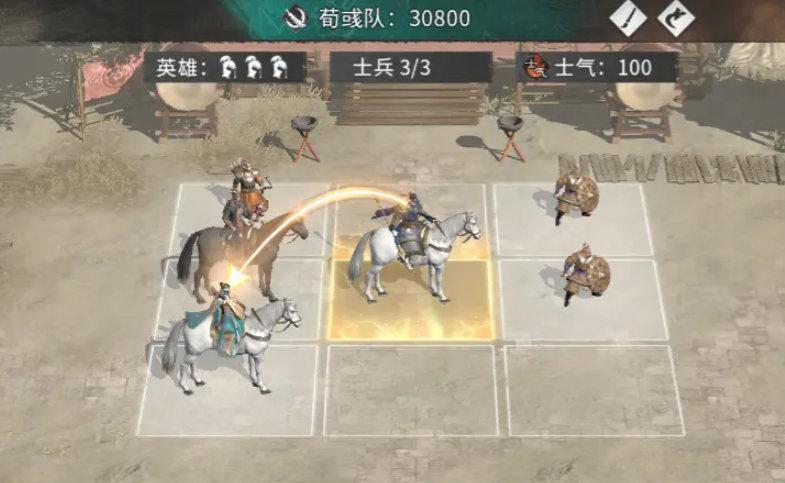 具体技能配置如下:张辽携带主动技“巧取豪夺”(108.9%单体伤害)、“白虹”(提升自身11%暴击率)与追击技“层峰”(对单体连续造成3次伤害);荀彧配置“两面三刀”(提升敌方受伤害量)、“阳春白雪”(为兵力最低单位恢复)与“兵无常势”(全体减伤);蔡文姬选用“阳春”(清除我方负面并治疗)与“鼎力相助”(回复兵力+提升伤害)。兵种方面,建议采用双藤甲兵承担前排压力,搭配一弓兵补充远程压制力。