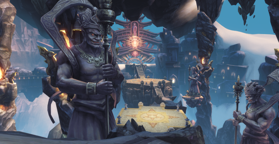 第二阶段核心Boss“金刚石像”由五具联动机关人构成,战斗逻辑遵循“行、受、识、色、想”五蕴递进顺序依次击破。过程中必须持续维持五者间能量射线连接状态,一旦断连将触发不可控狂暴,大幅提升攻击频率与范围伤害,极大压缩团队容错空间。
