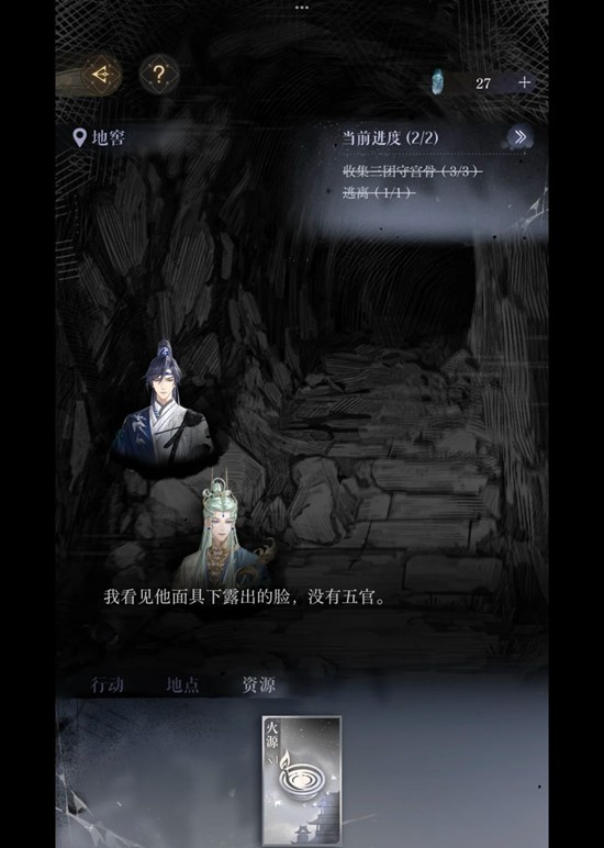 寒夜六:搜查得到干粮(飞云和环境都会触发 随机),交谈/聆听(很多宝宝说是聆听 我是交谈触发的)飞云得到信息,去雪山(解锁洞窟),这里会出现三个怪打完之后,搜查得到干粮(这里我没有资源了所以搜查得到干粮才去的洞窟,如果你们有干粮可以不用搜查直接去洞窟),搜查得到飞云同行,环境使用短刀