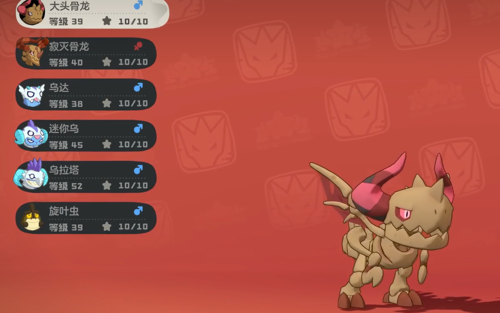 特性方面大头骨龙拥有一个叫做不朽的特性,这个特性在全游戏里面是独一份的。效果就是精灵倒下之后可以复活一次,不过需要等待六个回合的时间。单看这个特性可能觉得有点鸡肋,毕竟六回合时间说长不长说短不短,但是放在多精灵对战的场合里面就完全不一样了。因为多宠对战本来战斗时间就比较长,六回合根本不算什么,复活之后又是一条好汉,可以继续上场输出。