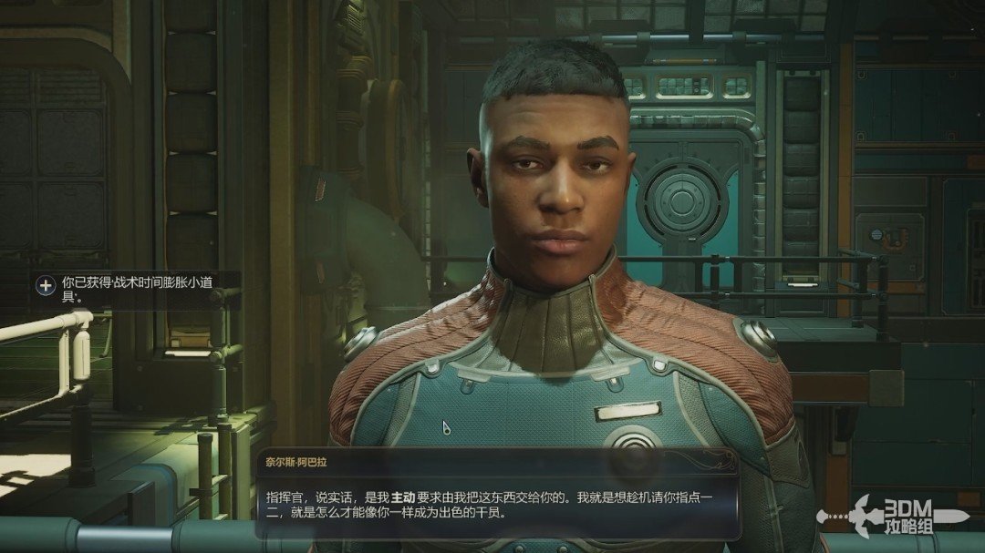 初期的对话选项不是很重要,可以看自己的游戏风格选。在对话的时候我们获得一个道具“战术时间膨胀小道具”,等会会告诉我们具体用法。
