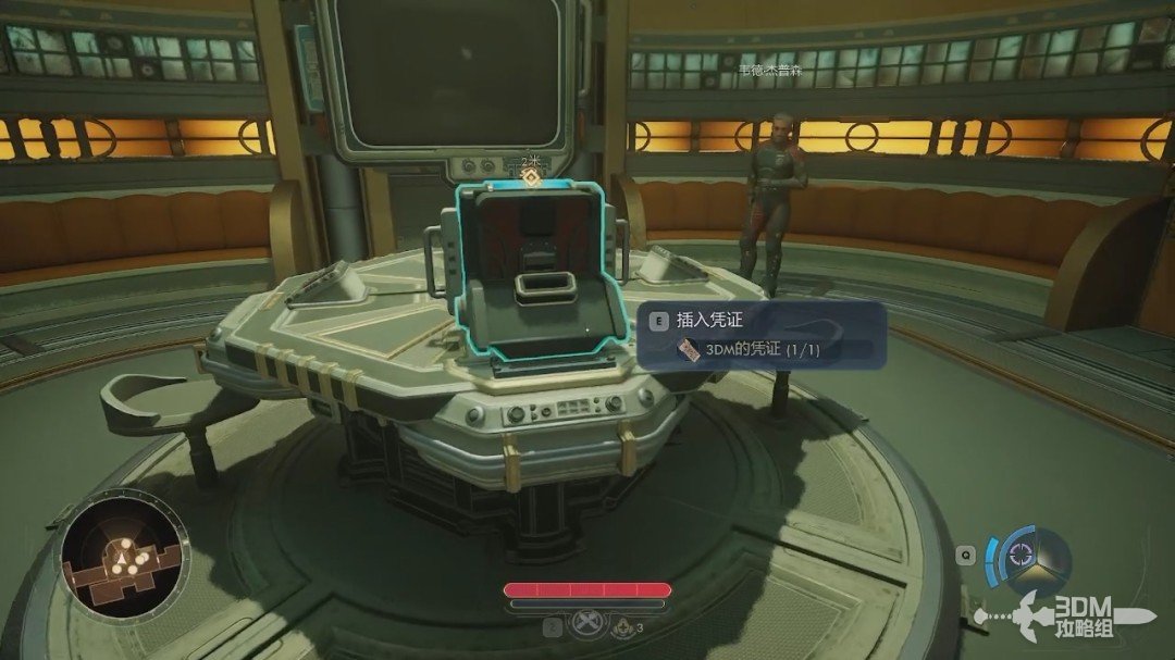 我们跟着目标点走,先来到下方的机器处,和机器互动可以接取到主线任务值得为之行杀戮的事业。此时我们没有获得凭证,并不能启动。