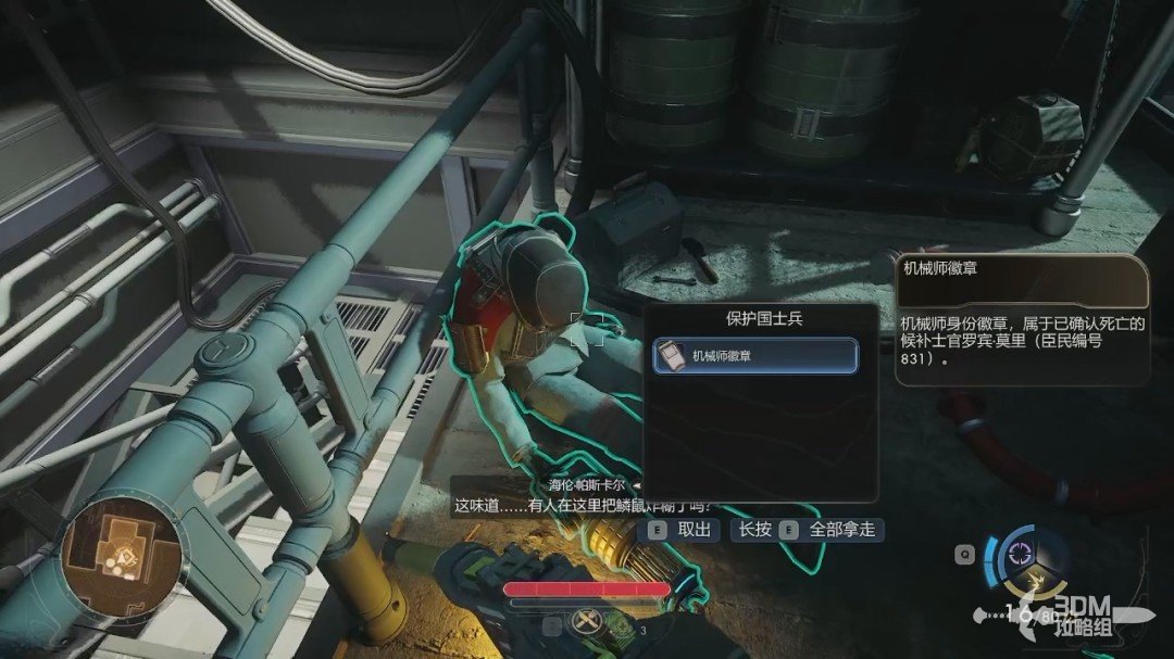 传送过来后继续跟着目标点走。来到目标点的二楼,在这边会有一个尸体,在尸体身上能获得“机械师徽章”。