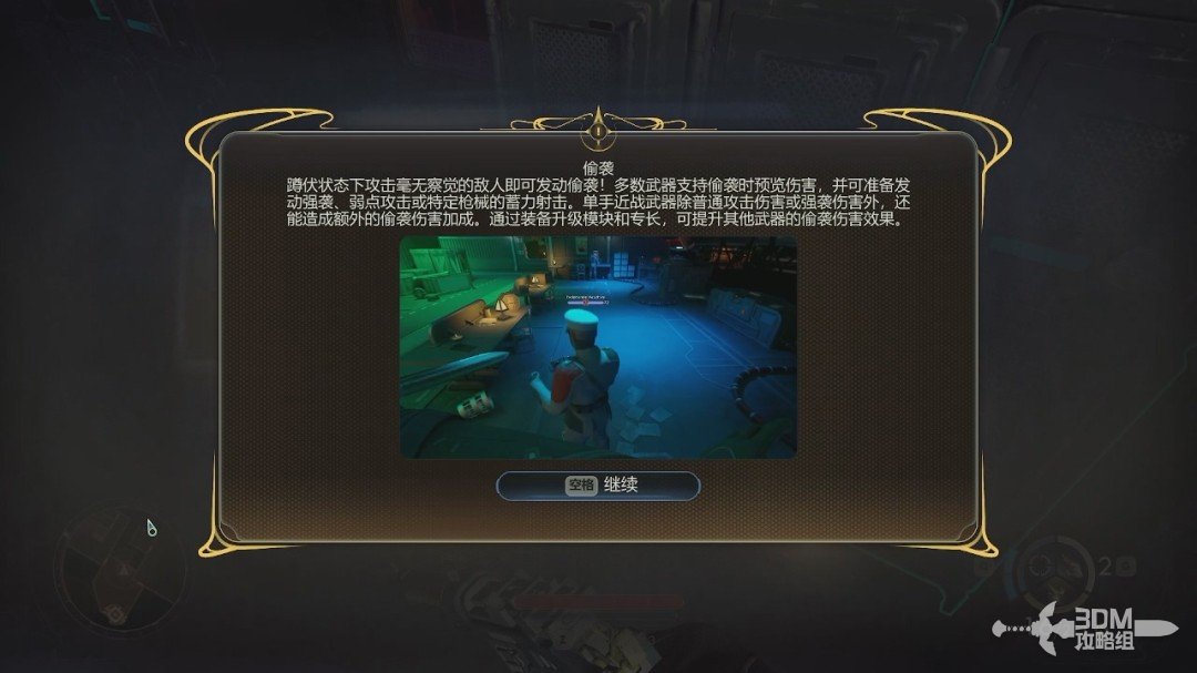顺手拿一下左下角的近战武器。在我们拿到近战武器的时候会出现一个偷袭教学,看看就行,和别的游戏差不多。