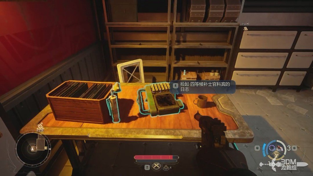 下电梯后我们先去前面的门搜素一下,里面除了能获得一些物资,还能获得“四等候补士官科宾的日志”。