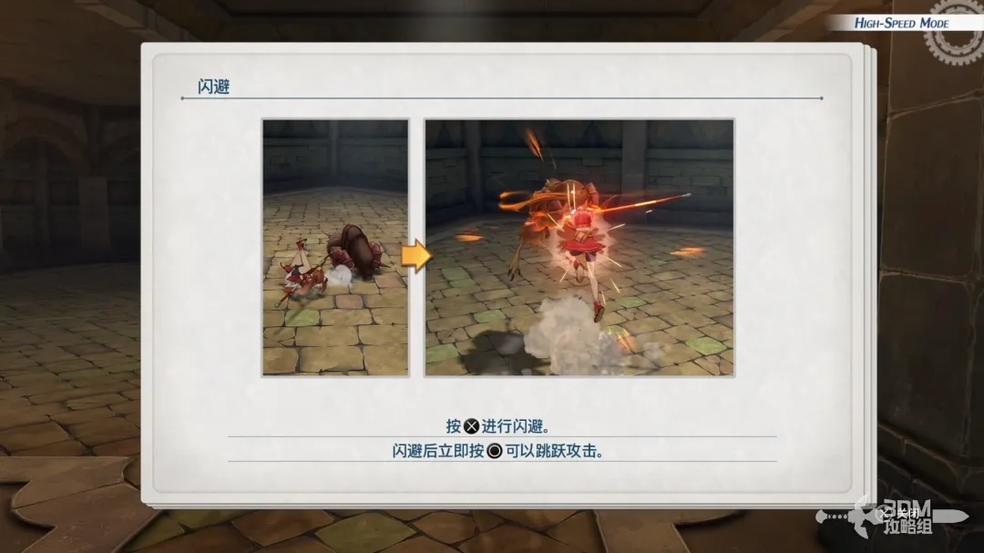 自由战斗模式下,还可以闪避敌人的攻击,闪避后按下攻击键可以跳劈。