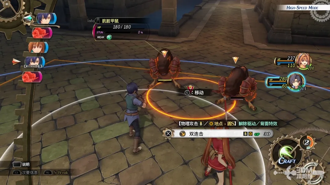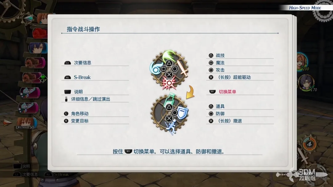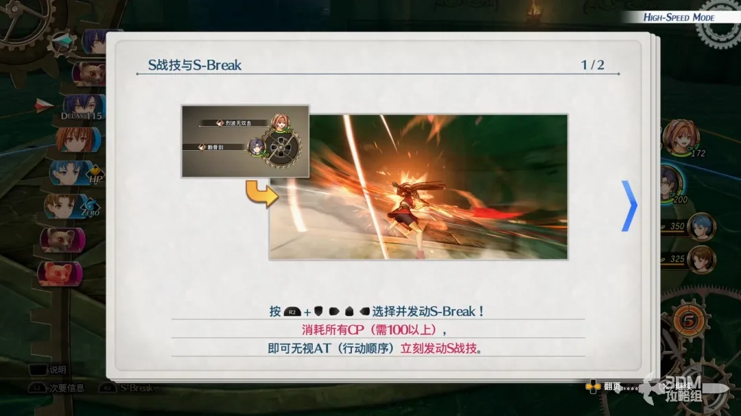 按R2+↑↓←→发动s-break,消耗所有cp无视行动顺序发动s战技。