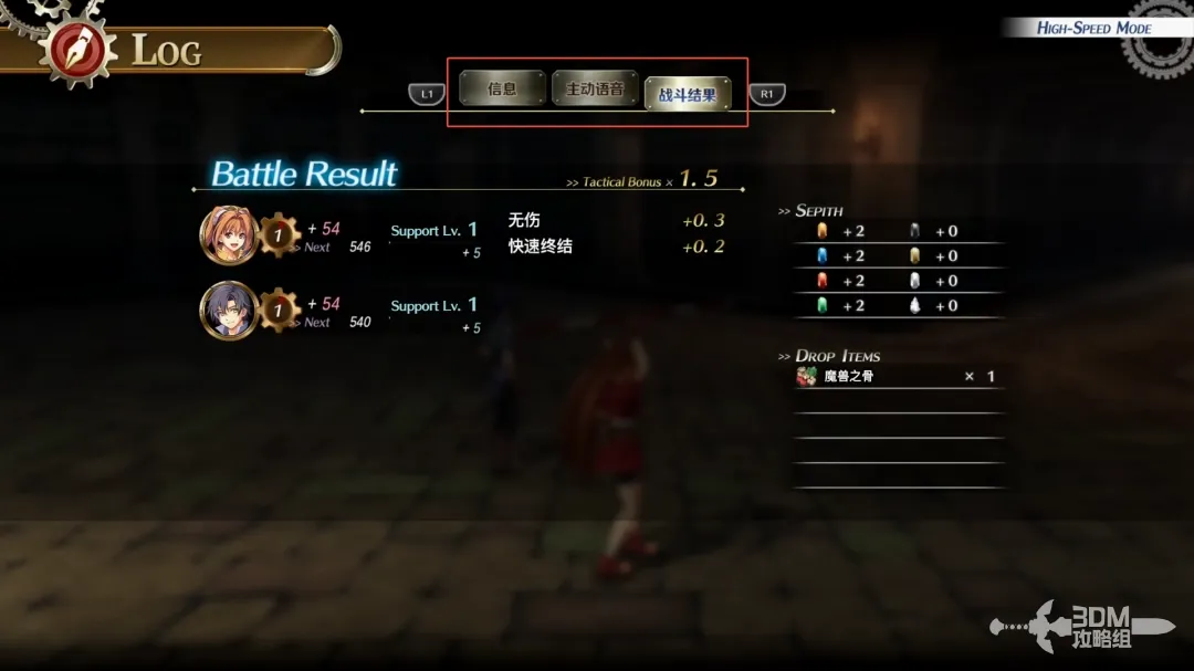 按方向键上,打开记录面板,查看战斗结果或者之前对话的内容。