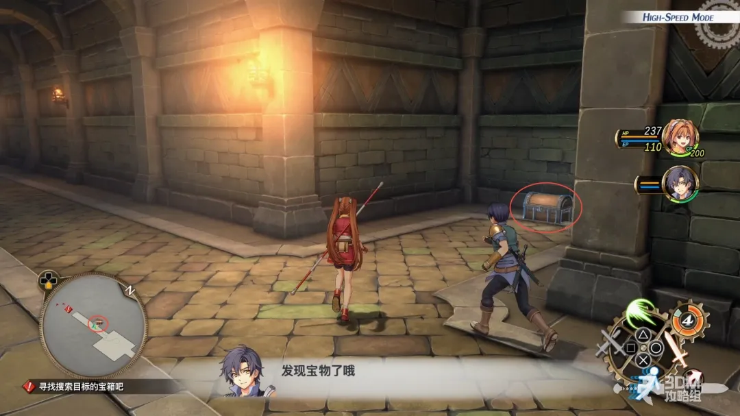 时刻留意小地图上的内容,右边有宝箱,不过这个宝箱并不是考核内容中提到的宝箱,所以继续往前。