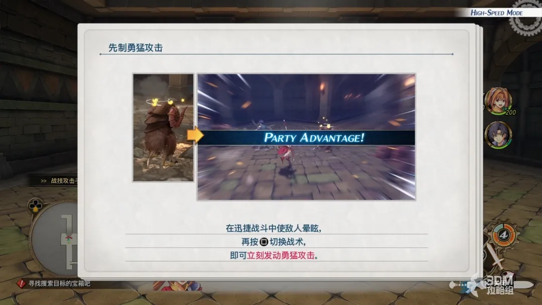 自由战斗模式下使敌人眩晕迅速切换为战术模式可立即发动勇猛攻击!