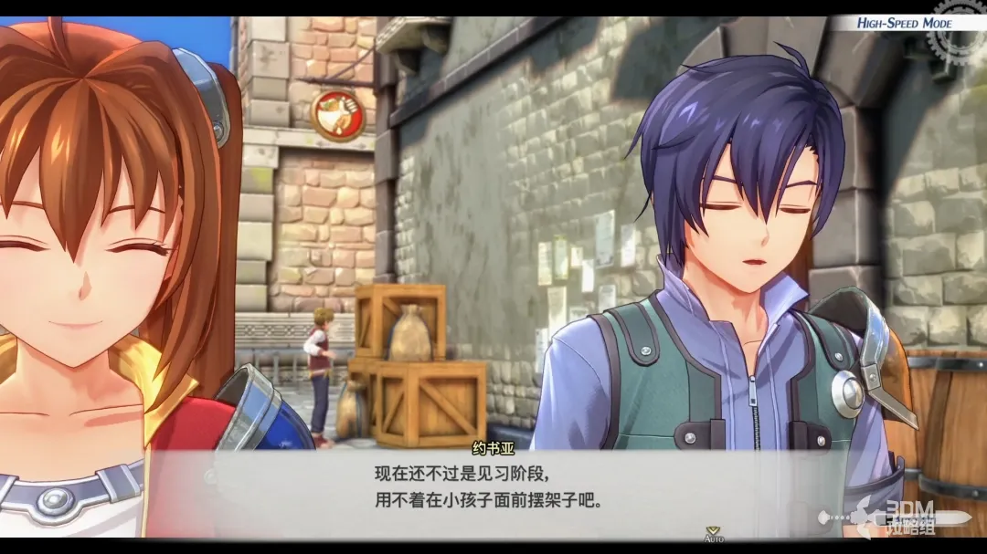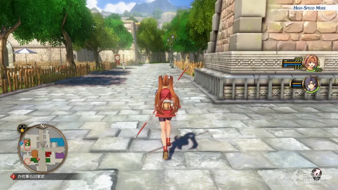 考核通过,回家向艾丝蒂尔的父亲汇报一下结果;出门和两个追逐打闹的小朋友撞见了,艾丝蒂尔也是炫耀了自己加入了游击士协会的成就!