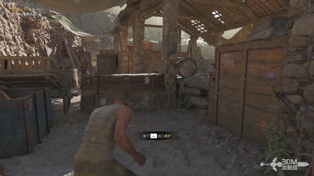 没办法,我们只能去偷了,来到这里需要按C键下蹲。