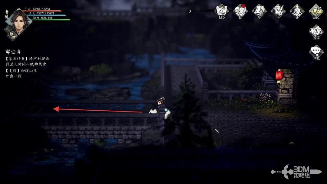 往南行走在路上遇见慕寒梅,然后解锁新的地图,在演练场上还有一场战斗。