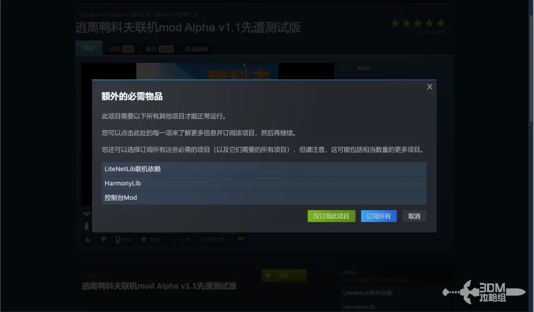 3.点击订阅按钮,随后会弹出新的对话框,提示需要额外的必需物品,点击蓝色的“订阅所有”。