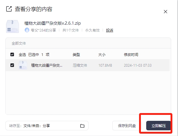 1、复制上方链接到夸克网盘弹出弹窗,点击“立即解压”。