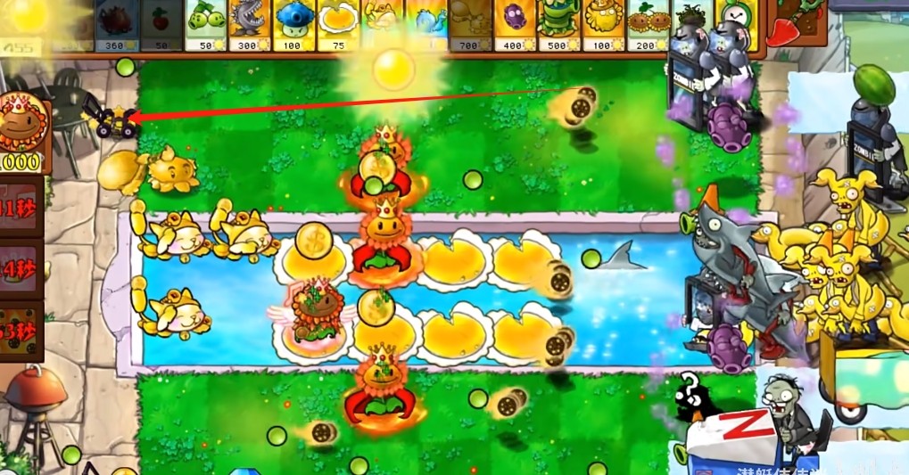 3、在有强力的僵尸到来时就可以使用这个车轮重塑者可以直接毁灭一整行僵尸。