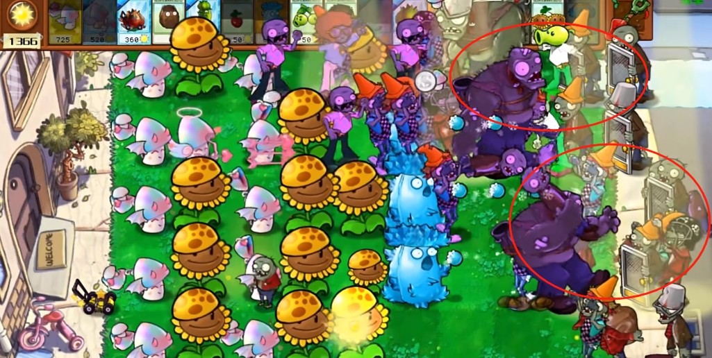巨大火焰弹:对接触到的所有植物造成2000点巨额伤害,可以被血量≥2000的植物挡下,