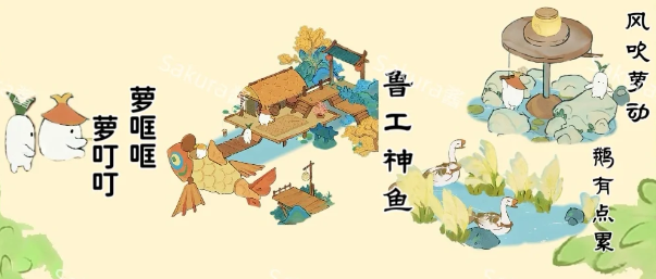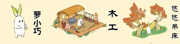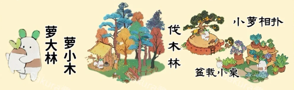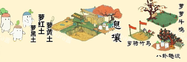 桃源深处有人家萝卜们也需要各个不同的生产建筑和娱乐建筑,使用不同的生产建筑娱乐建筑来进行搭配,每个娱乐建筑都是为不同的萝工量身打造,可以让各个不同的萝卜们来进行入驻。下文是各个萝卜搭配对应的建筑详情内容!