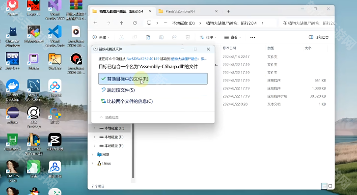 2、然后将压缩包中的所有文件复制到融合版对应版本的根目录中,并确认替换相同名称的文件