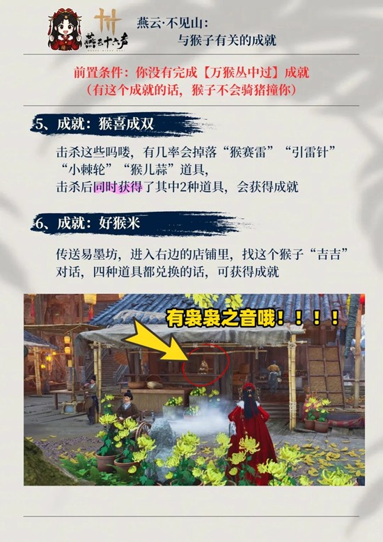 燕云十六声不见山成就攻略 猴子成就怎么获得攻略