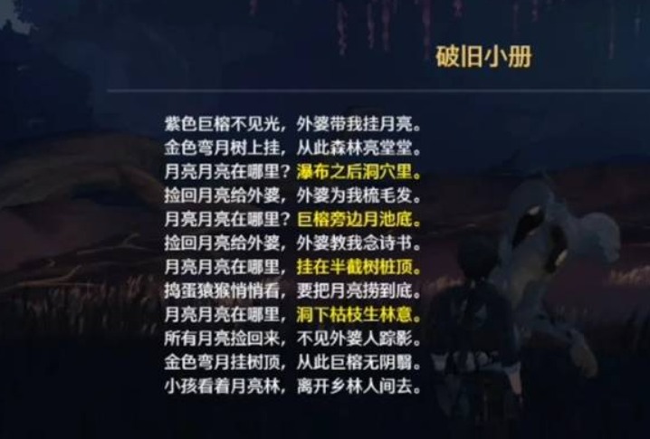 与npc交谈后,会有一本小册童谣指明4处人造月亮位置。(再一次交谈才会更新地图信息)
