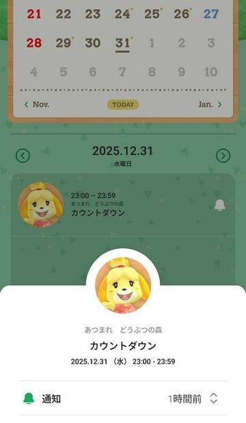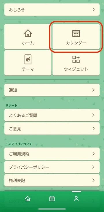 只要把《集合啦!动物森友会》的活动设定为 ON,行事曆内就会显示「钓鱼大会」及「可取得季节素材的期间」等的活动。