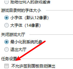 然后找到右侧"任务设置"中的"不允许签到面板自动弹出",将其取消勾选。