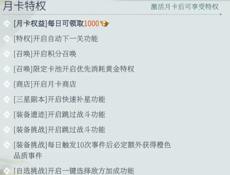 除基础资源外,月卡更聚焦于流程优化。例如“自动开启下一关”功能,有效减少重复点击操作,在主线推进与日常刷图过程中显著提升流畅度。对于强调挂机与策略部署的卡牌类玩法而言,此类自动化支持比短期数值加成更具长期价值。
