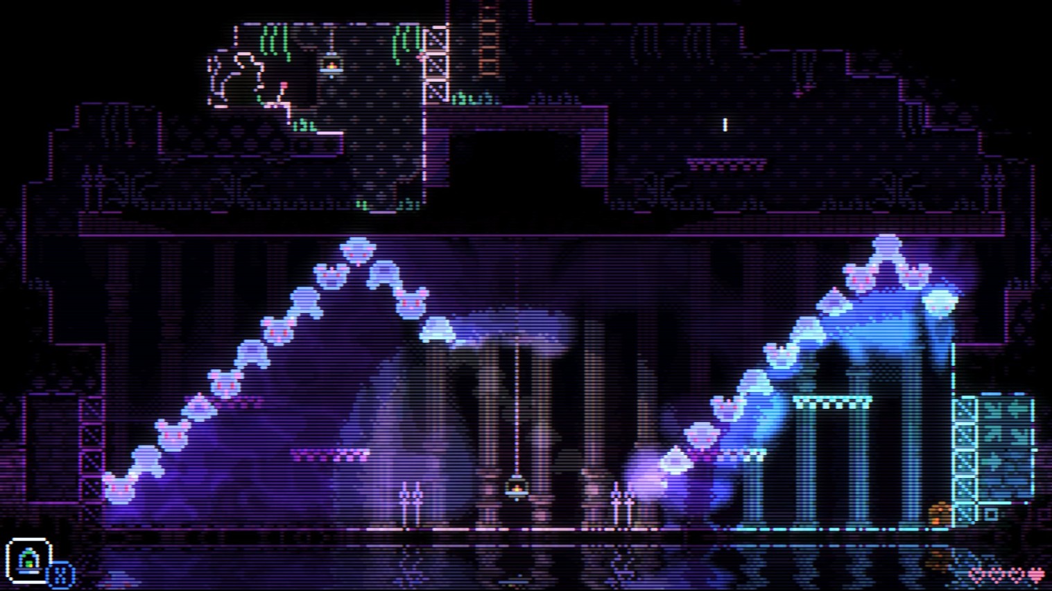 1.在猫猫地牢从左上向右,自上而下,输入五个音符就会有一只猫猫的牢笼被打开,所以每个图片对应的是一只猫猫的牢笼钥匙,一共有两个猫猫牢房,正常探索应该都不会错过, 之后会解锁一个猫穴房间,宝箱里有轮子道具