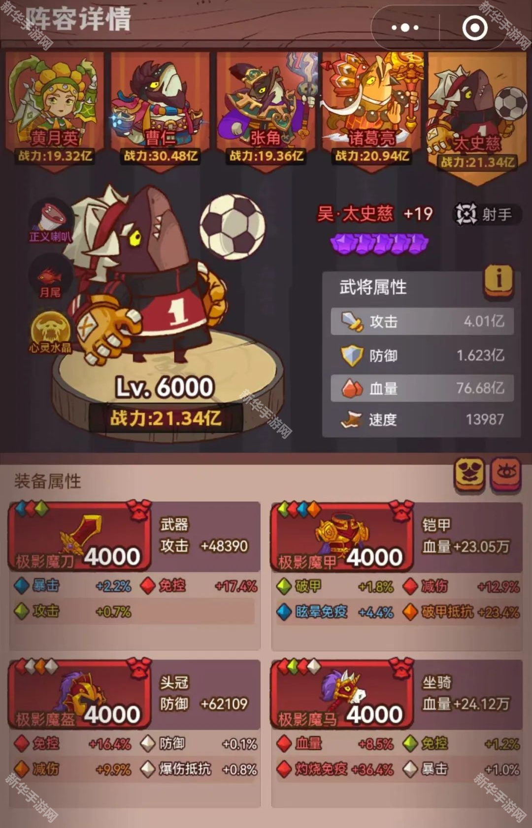 张角和太史慈双协力,黄月专属,曹仁比较随意点大家自行选择。