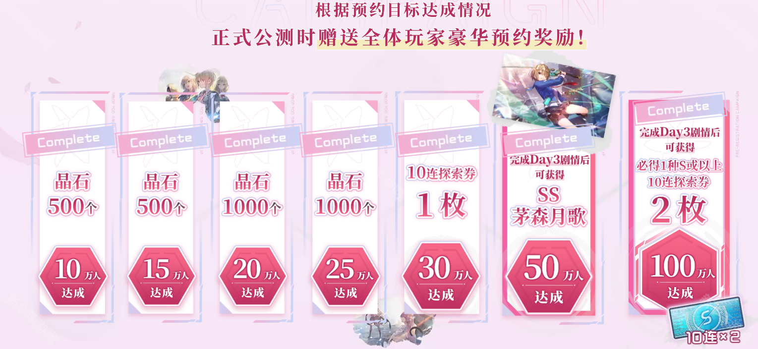 100万人达成→完成Day3剧情后可获得:必得1种S或以上10练探索券x2