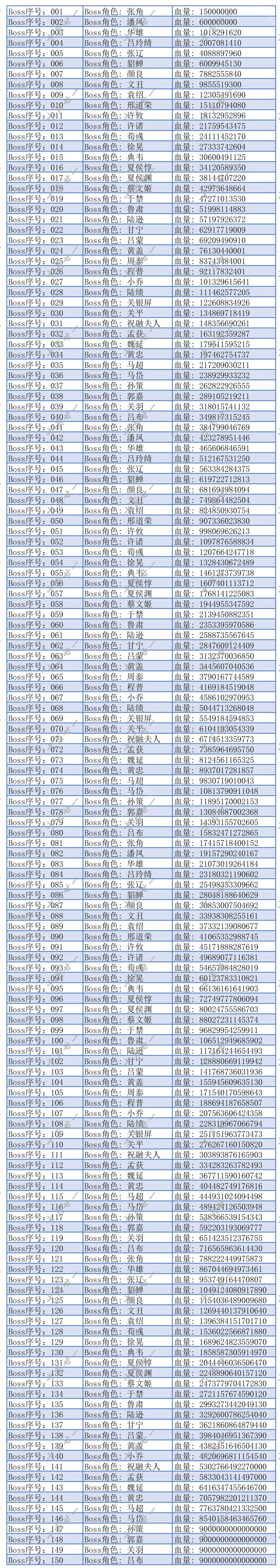 一、俱乐部全Boss血量一览图