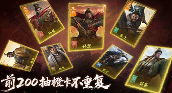 游戏首创“前200抽橙卡不重复”机制,每次抽取金卡都可获得全新猛将。