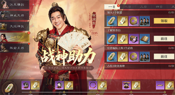 通过活动「阵前点将」,可从赵云、张辽、袁绍等12位橙将中任选1位带入游戏,为开局提供战略优势。