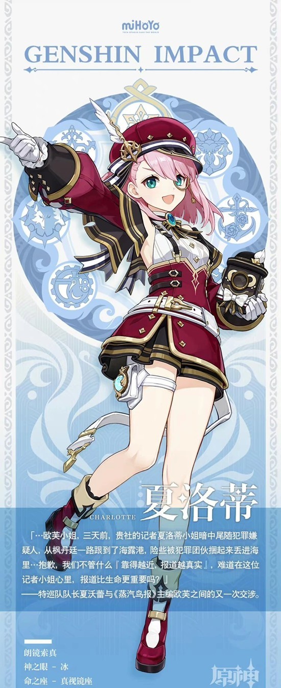 以上就是原神角色夏洛蒂培养攻略,夏洛蒂天赋武器及配队推荐的全部内容了,更多游戏资讯,攻略内容敬请关注,您的支持是我们努力的动力!