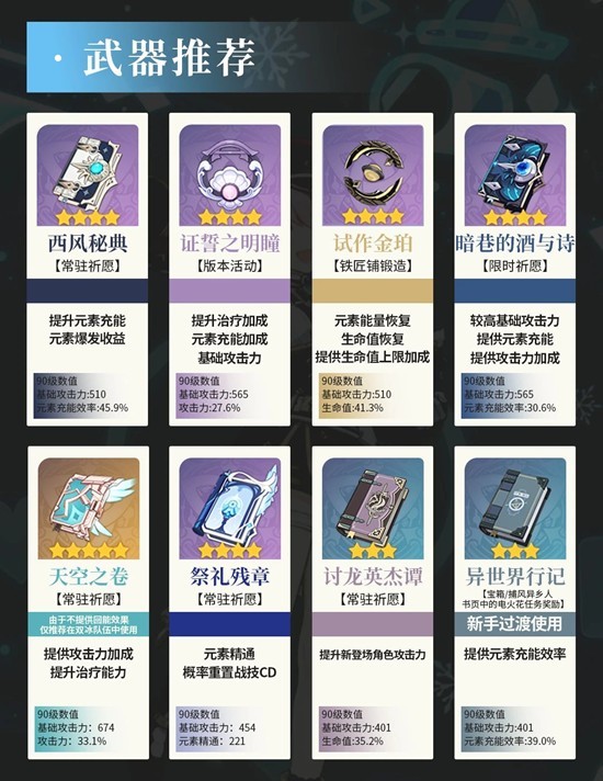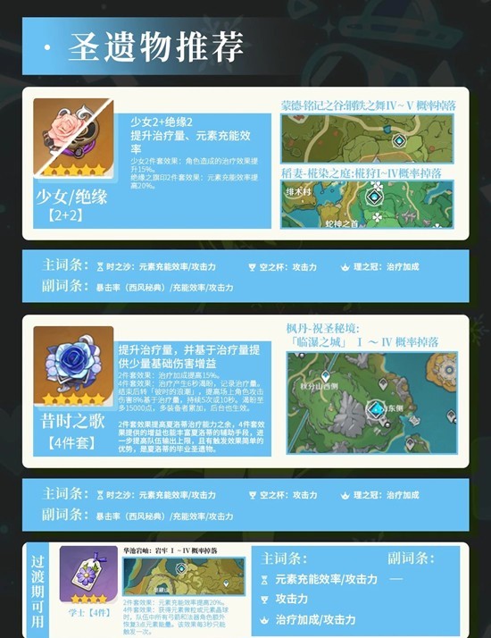 圣遗物推荐:①少女2+绝缘2,②昔时之歌,③学士(过渡)