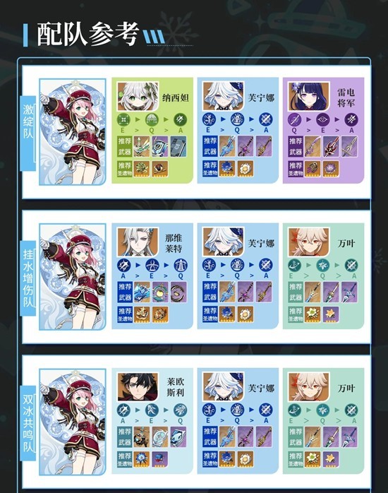 ③双冰共鸣队:夏洛蒂,莱欧斯利,芙宁娜,枫原万叶