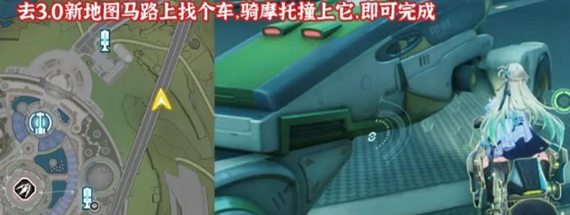在3.0新地图马路上找个车,骑摩托撞上就可以了