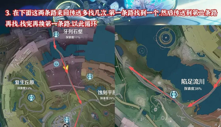 在下面这两条路来回传送多找几次,第一条路找到一个,然后传送到第二条路再找,找完再换第一条路